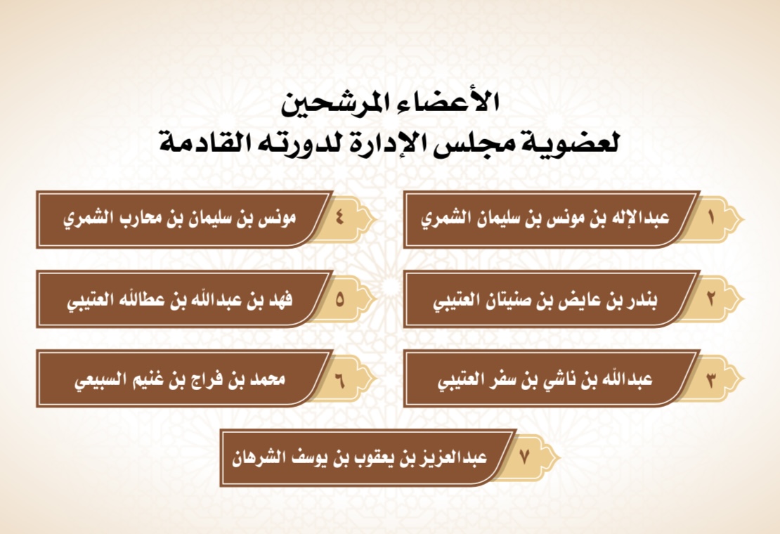 يسر إدارة جمعية الدعوة بالخفجي الأعلان عن أسماء المترشحين لعضوية مجلس الإدارة في الدورة القادمة ( 2025 – 2028 ) وعددهم ( 7 )...