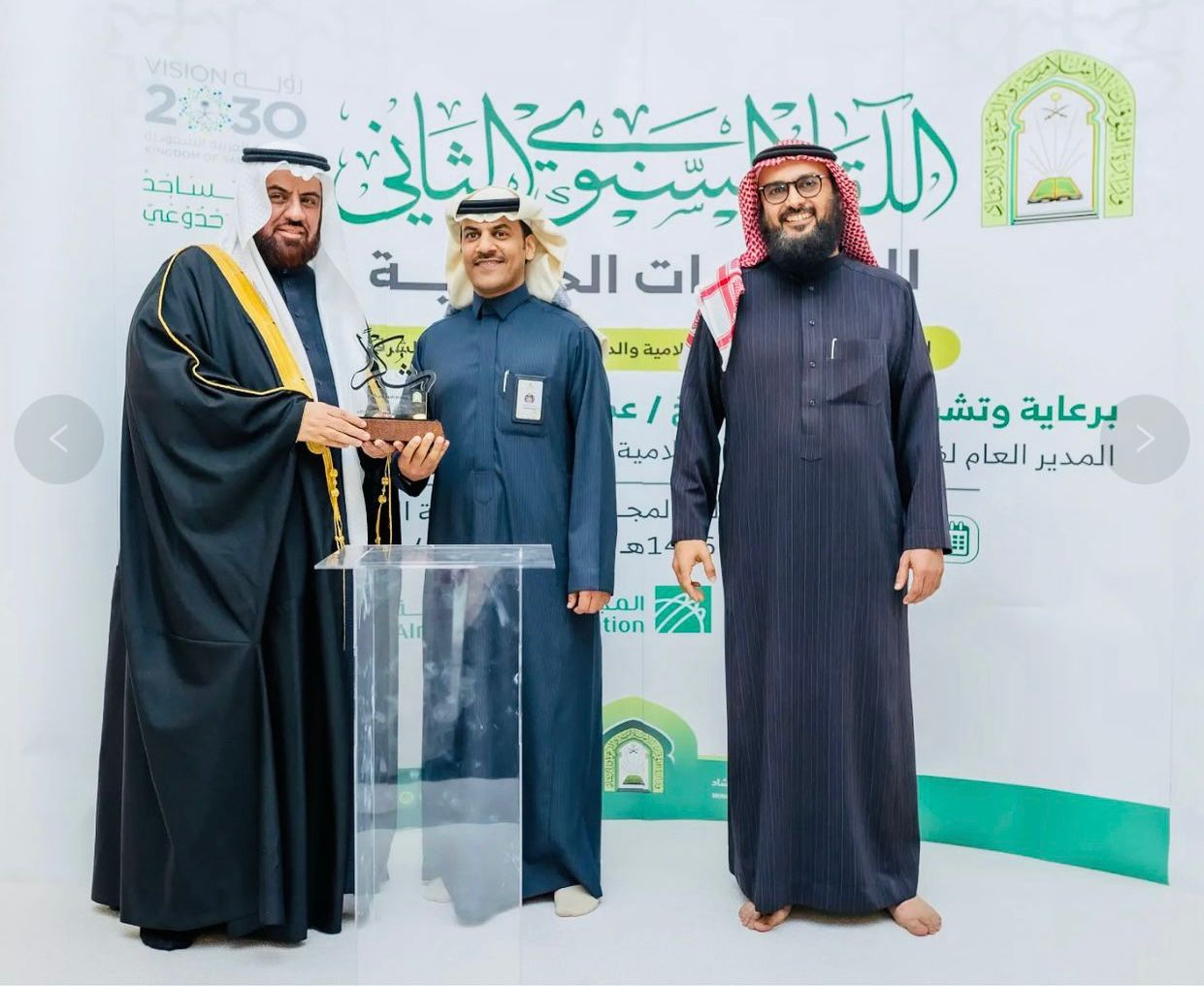 تشرفت جمعية الدعوة والإرشاد وتوعية الجاليات بمحافظة الخفجي ممثلة بالمسؤول التنفيذي الأستاذ/ بدر بن خلف العنزي، بتلقي تكريم من المدير العام لفرع وزارة الشؤون الإسلامية بالمنطقة الشرقية الشيخ/ عمر بن فيصل الدويش، تقديراً للجهود المبذولة في الدعوة لعام 2024م، وذلك ضمن اللقاء السنوي الثاني للجمعيات الخيرية بالمنطقة الشرقية في جامع (أم عبدالله المجدوعي) بمدينة الدمام وذلك مساء يوم الأربعاء 12/ 2 /2025م.