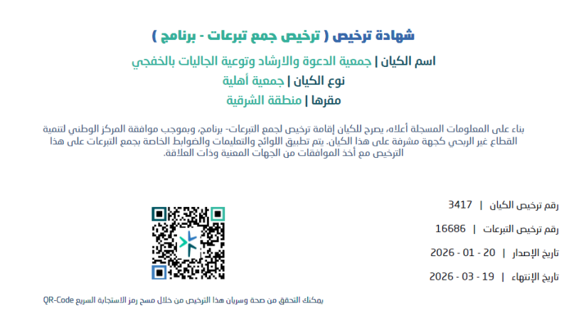 تطلق جمعية الدعوة والإرشاد وتوعية الجاليات بمحافظة الخفجي مشروع إفطار ودعوة لعام 1447هـ، لتوفير وجبات الإفطار في شهر رمضان المبارك للجاليات المسلمة بالمحافظة.
