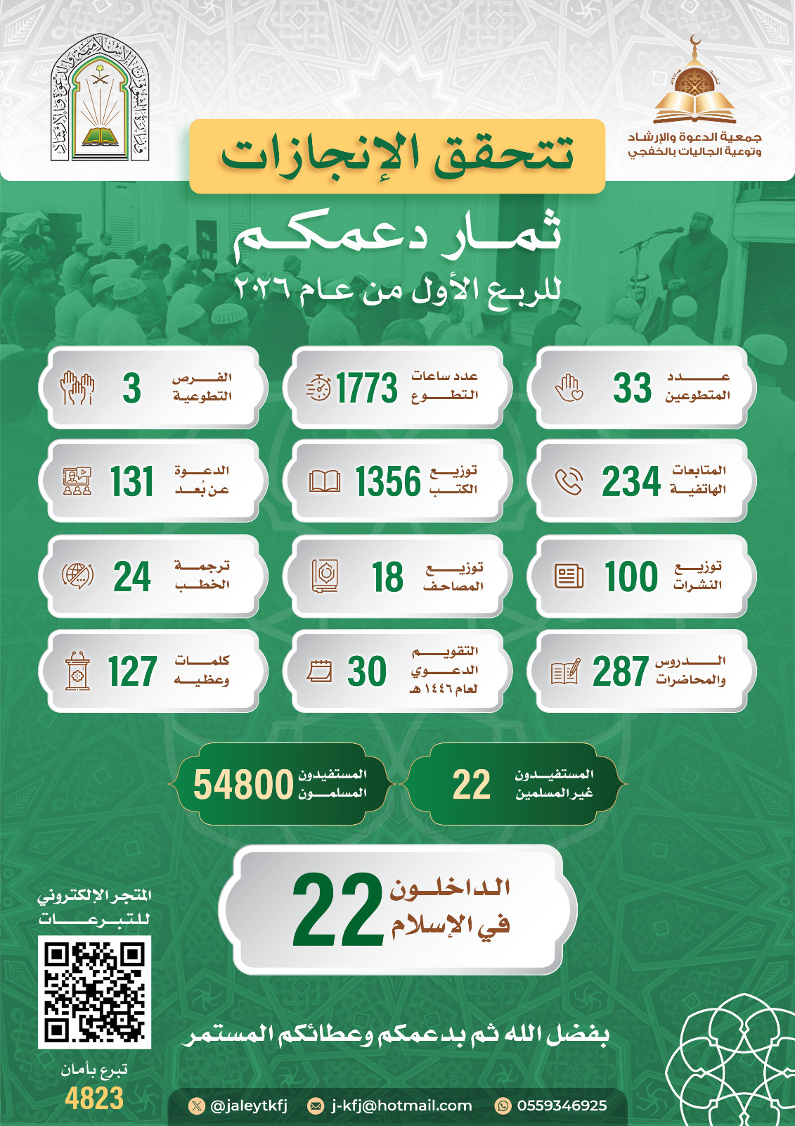 جميع الحقوق محفوظة لـ جمعية الدعوة والإرشاد و توعية الجاليات بمحافظة الخفجي